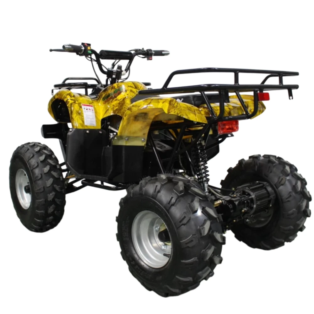Данный квадрик обладает пониженной передачей, барабанными передними тормозами, а сзади - ножным дисковым гидравлическим тормозом. У него тихий и мягкий ход из-за отсутствия цепной передачи и наличия дифференциала.