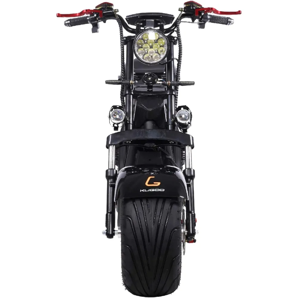 Электроскутер  Citycoco Kugoo C6 – обновленный вариант бренда занимает лидирующие позиции в продажах. Брутальный кричащий дизайн заинтересовал райдеров-экстремалов и любителей рыбалки. Широкая отлично сцепляемые шины обещают отличную проходимость и отсутствие проблем в дороге. Техника создана для езды по бездорожью, не разочарует при преодолении небольших препятствий и путешествии по лесным тропинкам.