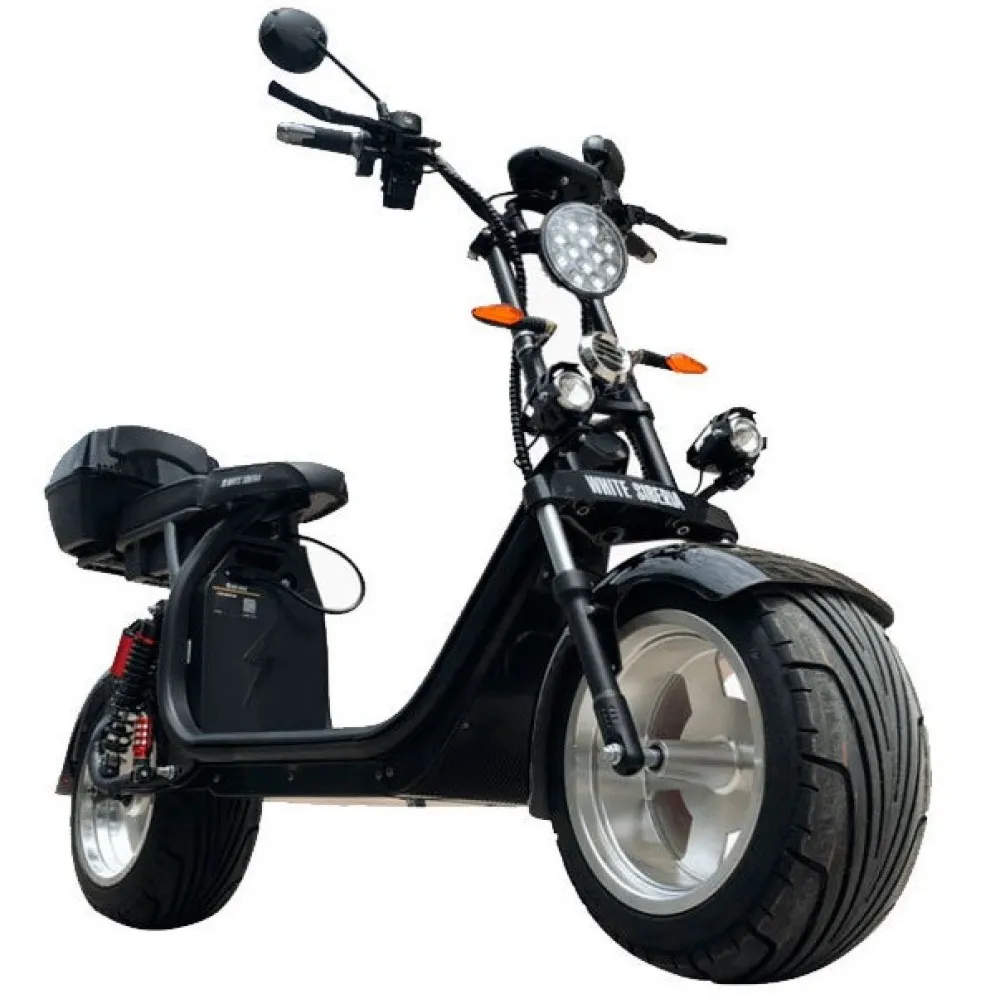 Электроскутер CityCoco WHITE SIBERIA PRO+ 2000W - универсальное транспортное средство, которое позволит совершать прогулки и поездки по работе на большие расстояния, не обращая внимания на погодные условия.  Данная модель очень практична в применении, ее удобно мыть, и хранить. Для поездок по личным делам модель показала себя как надежное, стабильное, функциональное устройство, обеспечивающее комфортное передвижение по любым дорогам. Большие колеса гарантируют беспроблемное передвижение по ямкам и прочим неровностям дорожного покрытия. Так же у данного аппарата вполне приемлемая цена. Дополнительно ничего нет надо покупать.