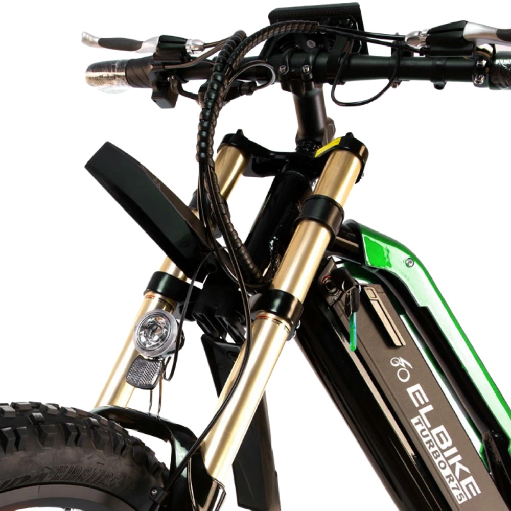 Электровелосипед Elbike TURBO R-75 Vip в зеленом цвете привлекает необычным дизайном, особым подходом производителя к изготовлению техники. Модель грузоподъемностью до 100 кг создана для смелых райдеров, предпочитающих большую часть времени проводить на свежем воздухе. Технические характеристики, 26-дюймовая колесная часть гарантируют комфортную езду по бездорожью и городской местности.