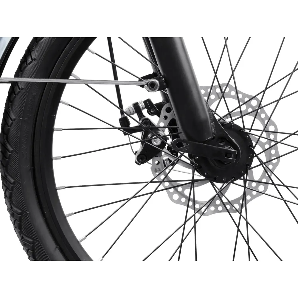 Мощный электродвигатель (350Вт) вместе с емким аккумулятором позволяет разогнаться до 25 км/час. Максимальное расстояние на одной подзарядке составляет 60 км. 20-дюймовые колеса устойчивые, с широкими покрышками. Седло регулируется по высоте, мягкое, повторяет анатомические части тела ездока, не вызывает напряжения. Информационный дисплей увеличивает степень безопасности райдера за счет предоставления данных о скоростных параметрах, заряде аккумулятора и пройденном пути. Максимальная грузоподъемность электровелосипеда при массе 24 кг составляет 100 кг. Купить технику выгодно, по лучшей стоимости позволит телефонный звонок менеджеру интернет-магазина.