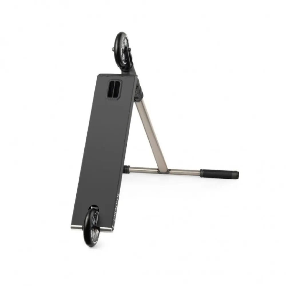 Из технических характеристик, важных для каждого трюкача производитель предлагает обратить внимание на следующие размеры. Высота хроммолибденового Т-образного руля составляет 610 мм. Конструкция прочная и послушная. Интегрированный вариант с промышленными подшипниками делает самокат послушным и простым в управлении. Дека – широкая (по ширине и длине составляет 510мм*120мм) , нескользящая и устойчивая, гарантирует размещение двух стоп одновременно.