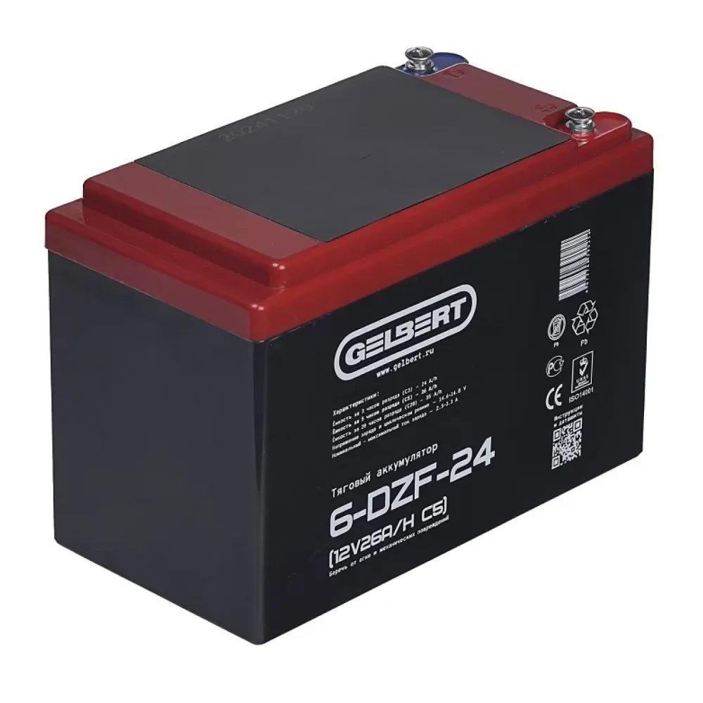 Тяговый аккумулятор Rutrike Gelbert 6-DZF-24 (12V26A/H C5) – это современное и надежное решение для грузовых трициклов и складской техники. С напряжением 12 В и ёмкостью 26 А·ч по схеме С5, данный аккумулятор гарантирует длительный срок службы и стабильное питание даже при интенсивном циклическом использовании. Его компактные размеры – 185 мм в длину, 105 мм в ширину и 130 мм в высоту, а также вес 6.95 кг позволяют легко интегрировать его в конструкцию различной техники. Продукт, входящий в серию DZF, отличается высокой эффективностью, надежной конструкцией и продуманной эргономикой, что делает его оптимальным выбором для профессионалов, ценящих качество и долговечность. Rutrike Gelbert 6-DZF-24 успешно справляется с задачами по тяговому питанию, обеспечивая бесперебойную работу оборудования в самых суровых условиях эксплуатации, будь то транспортировка грузов или работа в условиях склада. Благодаря инновационным технологиям производства и строгому контролю качества, этот аккумулятор заслуживает доверия и является надежной опорой для любой техники, требующей стабильного и мощного источника энергии.