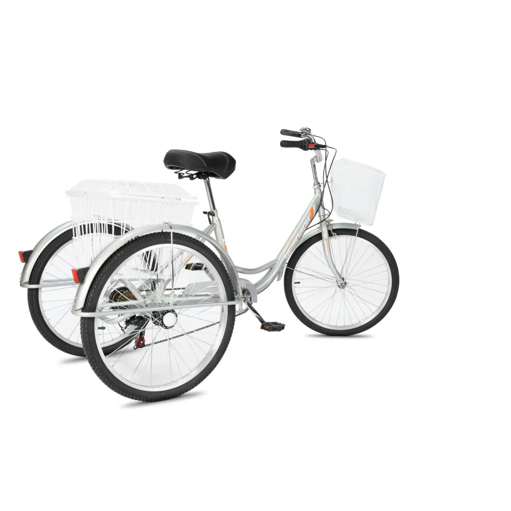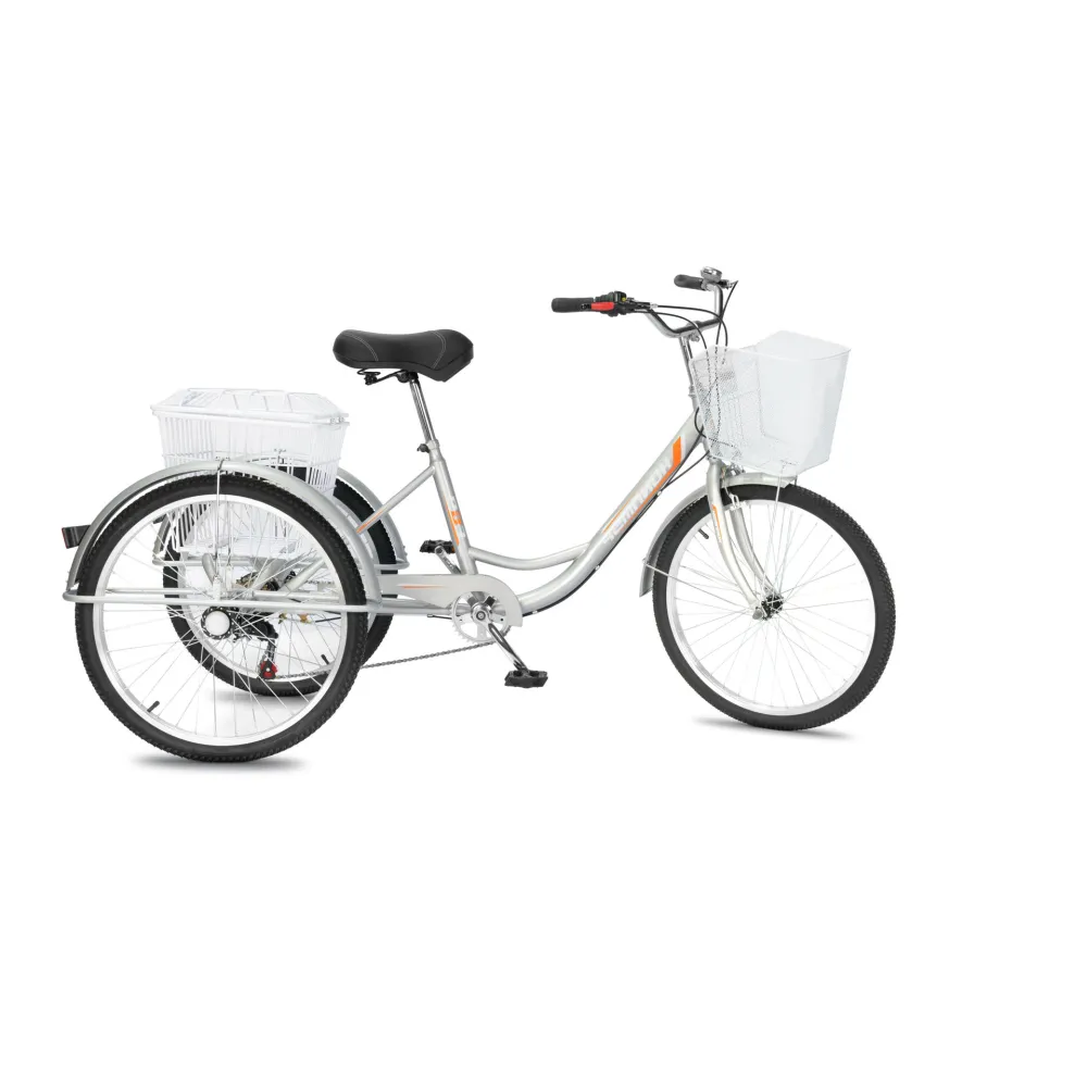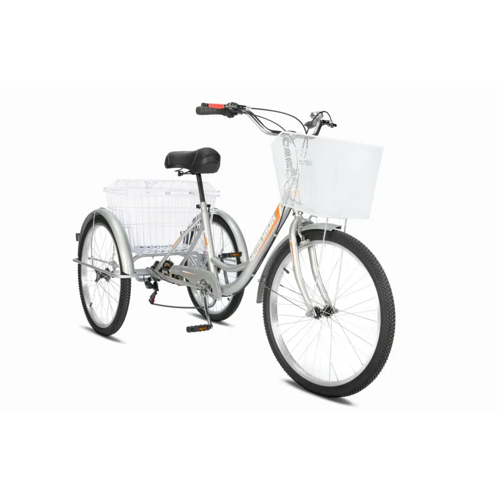 Высокие показатели прочности и надежности благодарны сверхпрочной стальной раме, которая не деформируется и не теряет первоначальных характеристик при максимальных нагрузках. Конструкция техники надежна и долговечна, полностью устойчива к различным деформациям и механическим повреждениям. На велосипеде установлены 24 дюймовые колеса с усиленными покрышками. Правильное сцепление с дорогой любого покрытия обеспечивается благодаря внедорожным протекторам на покрышках. Комфортно передвигаться в любую погоду и обеспечат защиту от брызг колесные крылья. В технике предусмотрены 6 скоростей для легкого преодоления дорожных неровностей.