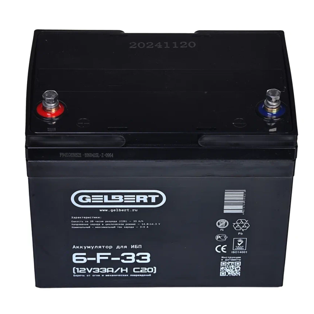 Аккумулятор для ИБП Rutrike Gelbert 6-F-33 (12V33A/H C20)